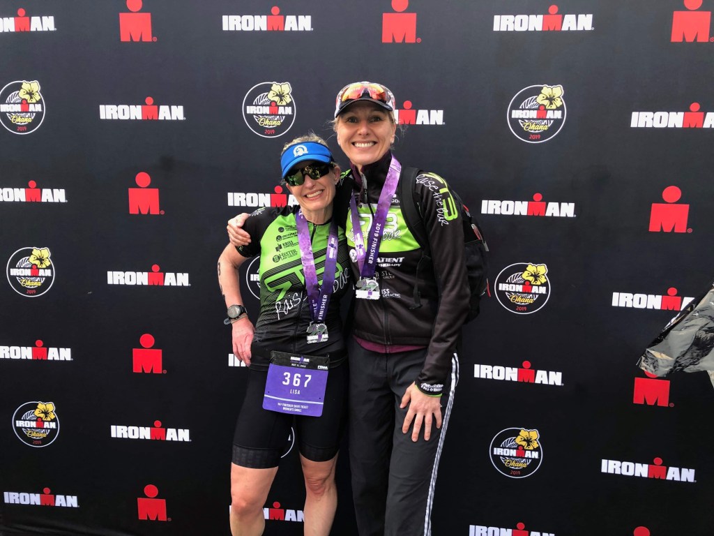 First, shout out to my amazing roomies, who kept it fun and did amazing things. Ann Sloan, also racing, never a moment she wasn’t full of fun and support. Ready to have a fun day with me no matter what, we started our race day writing FUN on our hands in Mickey Mouse pajama bottoms. Diana Hull, who is always an amazing human, was the Sherpa for 3 and guardian of my Dad on race day. And Diane Haensel, my Ironman mommy, as I call her, nothing but love for her. She took me to my first Ironman last August and gave me everything a first timer could ask for and more. This time round, she did the same through training and race day. She’s on a rocket to the top, crushing all her goals and still has time for me! And last but not least, my neighbor who is now my soul sister, Rachel Elizalde-Powell. We missed each other a lot at the race, but boy those text messages we shared pre and post race were priceless. Our one photo together (after a big giant hug) meant so much.