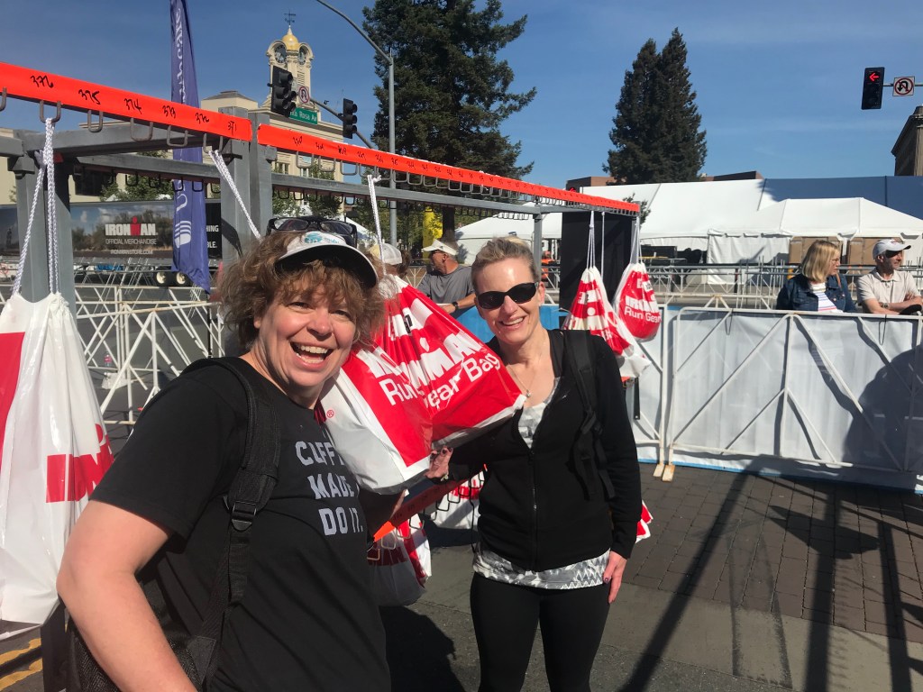 Transition arrival. All the bags. We had already dropped off all of our bags, but the bags for Ironman still make me anxious. Morning bag, T1 bag, T2 bag, special needs bike bag, special needs run bag. Coming from 70.3 or shorter races before my Tremblant Ironman in August, the bags are a thing that I haven’t quite gotten used to. But come to find out, as the Rolling Stones say  – you don’t always get what you want, but you get what you need. And I did. The flashlight I planned to have in case I had to run in the dark with my injury situation, ended up in the bike special needs bag. Oops. The gloves for the bike in case it was as cold as it was the day before, in the run bag. Of course, I learned all this throughout the day. Happily, I didn’t end up needing those things, grateful on both counts. I did however get what I really needed in my special needs run bag, and I am so grateful.