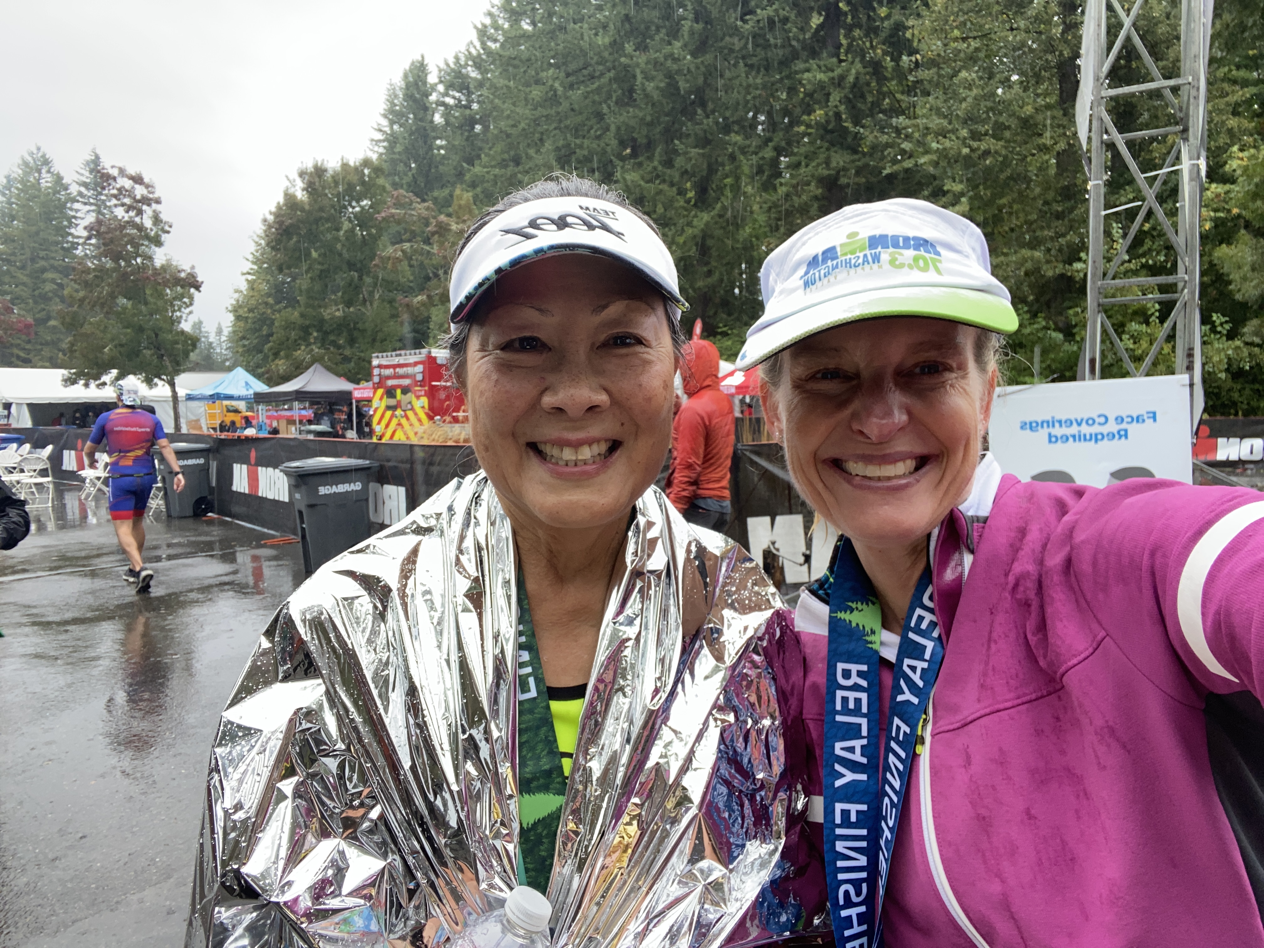 Our goal was to have fun and that we did! It was a nice surprise to take 13th place in the relay division on top of that. Once again, truly a perfect ending to the triathlon season, doing a relay with 2 fantastic women in our own backyard. Super proud of all my local triathlon friends who won their age groups, placed in their age groups, and so many others who smashed their goal times or completed their first 70.3 race. Special shout out to my training buddy Joy, who at 62 did her first 70.3 race and crushed her goal time with a 6:57 finish. Sure, the weather could have been better. But the energy and camaraderie of everyone at the inaugural Washington 70.3 more than made up for it. Looking forward to supporting the race in 2022!