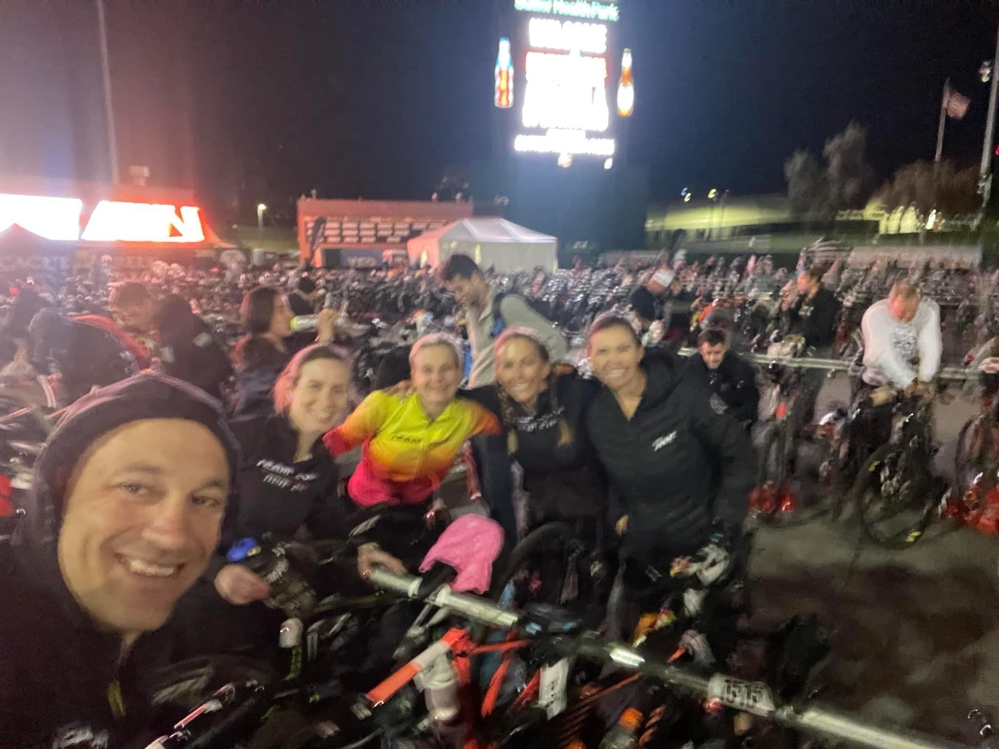 Arriving on Wednesday, Diana, Ann and I had time to prep, eat out and sight see! I put Sassy together in record time from her bike bag, zero tears or issues (big feat for me) and I was ready to ride her Thursday. We met our Airbnb neighbors in the backyard who also had a racer, and immediately clicked. Thursday I had a great check out ride and short run, all systems go, weather was perfect. A big highlight of the day was saying hello to Mike Reilly and getting a signed copy of his book. I was lucky enough to have Mike Reilly say “Lisa Blauvelt, you are an Ironman!” at my first full Ironman in Mt. Tremblant, and I was thrilled to have him call me in for my last full Ironman before he retired. Jenn, Rob and Sugar arrived Thursday night and we were a full house.
