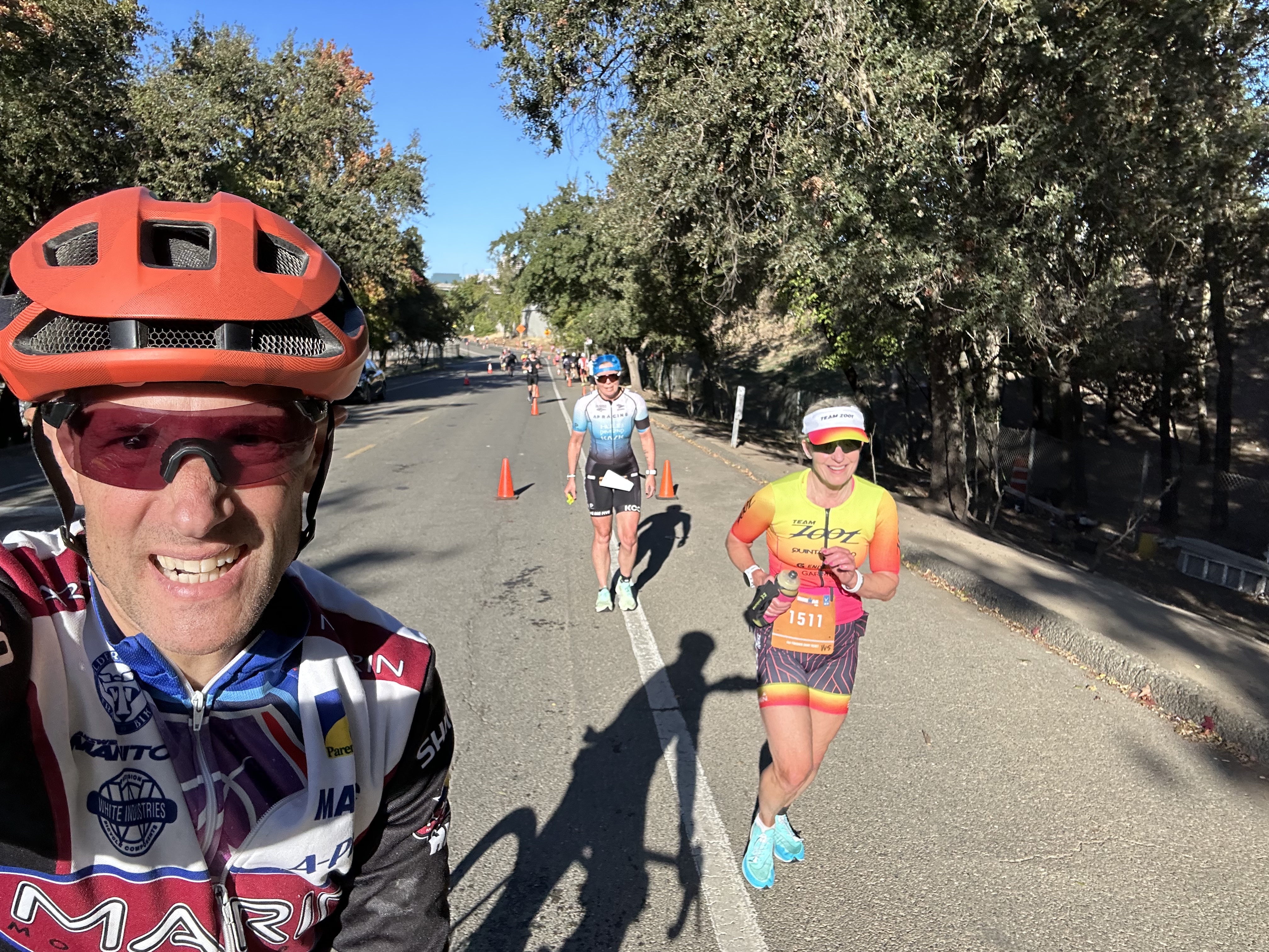 Final full Ironman race, last race of the year. I am so grateful I got to the starting line, what a ride the past 11 months had been since my ankle sprain. Got out of a boot in June after a PRP procedure, chances weren’t great I’d get to do it at all. See the RAMROD report {LINK} for more on ankle rehab! At 55, even before the boot I knew this would be my last full distance Ironman – to save my body from the training but stay fit with cycling events, half Ironmans and shorter triathlons. Growing up in the Sacramento area, IM CA would be a “home” race for me – a flat, fast, final Ironman where I hoped to get my best full IM finish time. At age 29, I had run my first marathon in Sacramento, finishing on the steps of the Capitol, just as the marathon for IM CA would end so it seemed perfect in that way too. With race day course conditions, I had my slowest IM finish time, but my best age group result of the three full Ironmans I have done. A great way to end my full Ironman career 😊